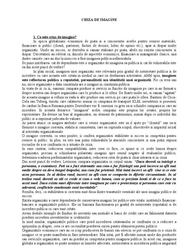 Am intrebat participantii cum au privit ei atat incidentul cat si modul in care a fost acesta gestionat. 8 10 din 2 voturi acest referat descrie criza de imagine. Arhiva contine 1 fisier doc de 14 pagini. Din experiența mea pentru că am fost și eu prinsă în crize de imagine din păcate de care nici nu vreau să îmi aduc aminte reacțiile oamenilor au foarte puțin de a face cu realitatea și contextul ci mult mai mult cu sentimente acumulate în mai multe situații și multă emoție care întunecă puțin judecata.
